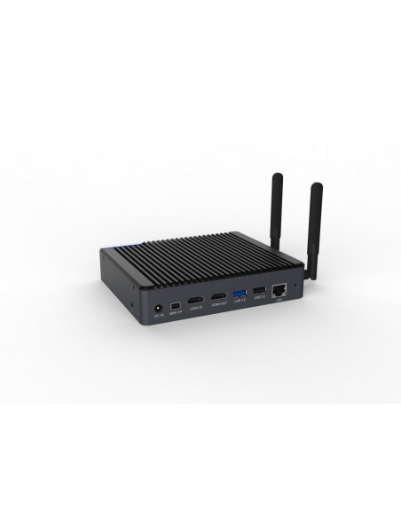 RAM LPDDR4x 4GB, Armazenamento 32GB EMMC, 1x RJ45, 1x HDMI-Out, 1x DP, 1x HDMI-IN, 1x USB3.0 1x USB2.0, 1x Micro SD, 1x WIFI-BT, 1x Type-C, 1x COM, DC-IN, Fanless, Android11, WatchDog, Auto Power On, RTC Power On/Off programável