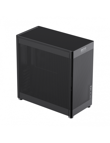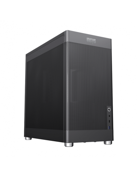 Este computador destaca-se não só pelo desempenho interno, mas também pelo design moderno e funcional. A caixa Mid Tower Gamemax MeshBox Pro oferece uma excelente ventilação graças à sua estrutura em rede metálica, otimizando o fluxo de ar e mantendo os componentes internos a temperaturas adequadas. As portas USB 3.2 Gen 1 (Tipo A e Tipo C) e o jack de áudio combinado localizados na parte frontal facilitam a conexão de periféricos e acessórios.